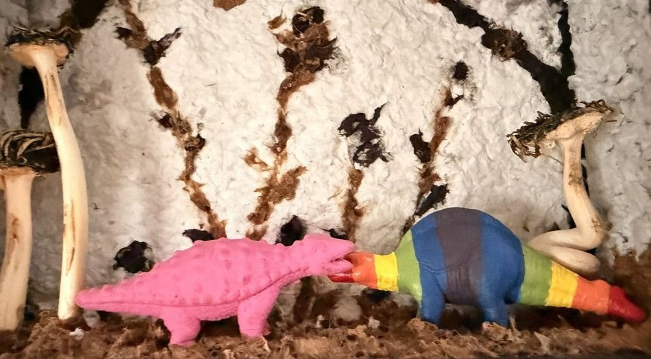 (installation) Dimensions: 8" height, 10" depth, 10" width Media: Plaster, paint, found objects (plastic fries) Completed: 2021 Not for sale: In a private collection
