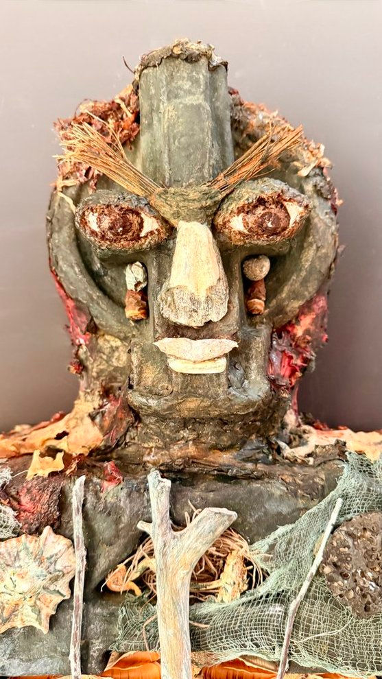 (pedestal piece) Media: wood, found objects, paper pulp, natural/organic pigments, food grade flaxseed oil & peppermint oil, Elmer's (PVA) glue Dimensions: 23" width, 17” height, 10" depth Completed: 2024 Contact me for purchase